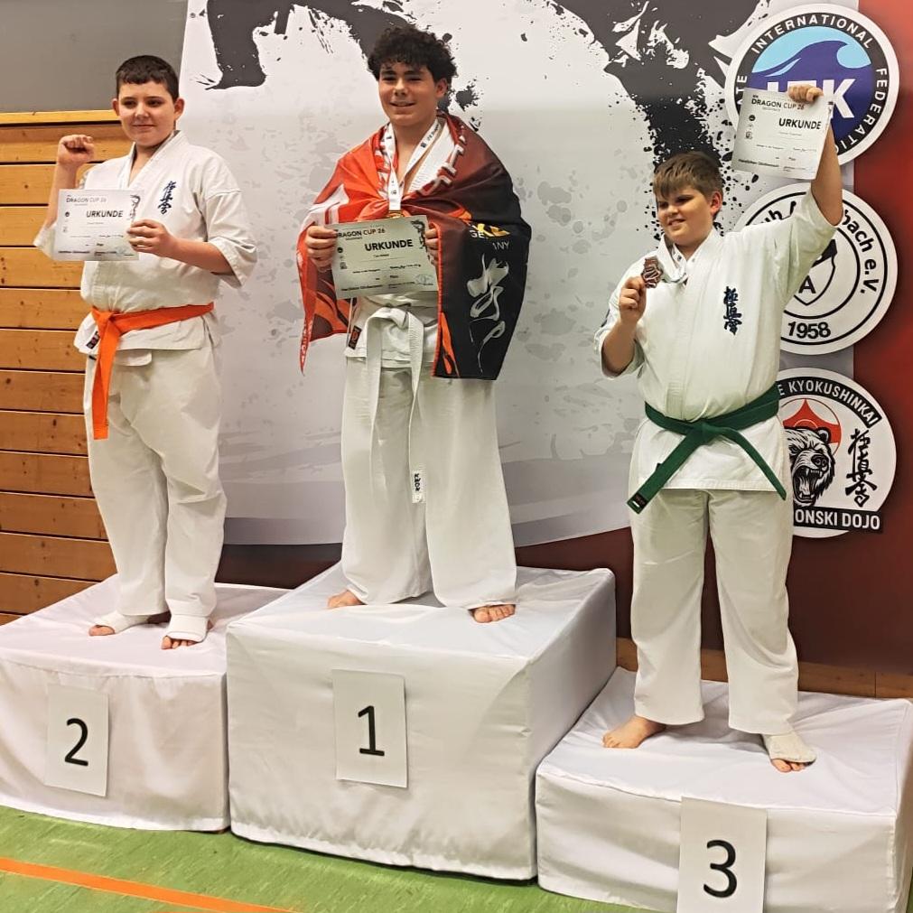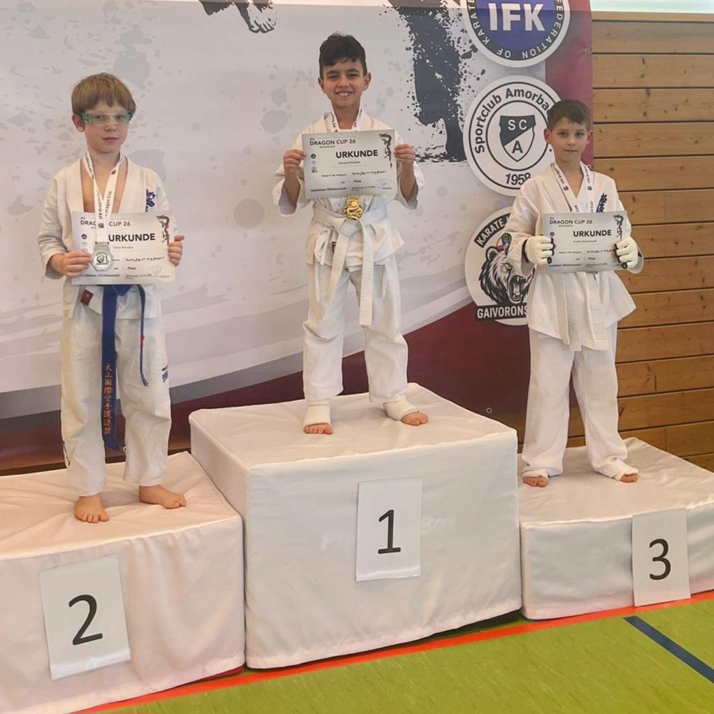 Gestartet wurde mit Kata. Dort waren wir in unseren Kategorien sehr überzeugend. Bei den Jungs holten sich Tom Hemmann Platz 1, Ali Malik Emul Platz 2 und Milan Bauer Platz 3. Bei den Mädels konnten sich Laura Moser Platz 2 und Lilli Arnold Platz 3 sichern. Polina Kustovska kam auf Platz 4 und Milana Zigele auf Platz 6. Alles in allem sind wir mit den Platzierungen sehr zufrieden.