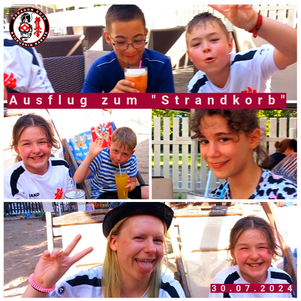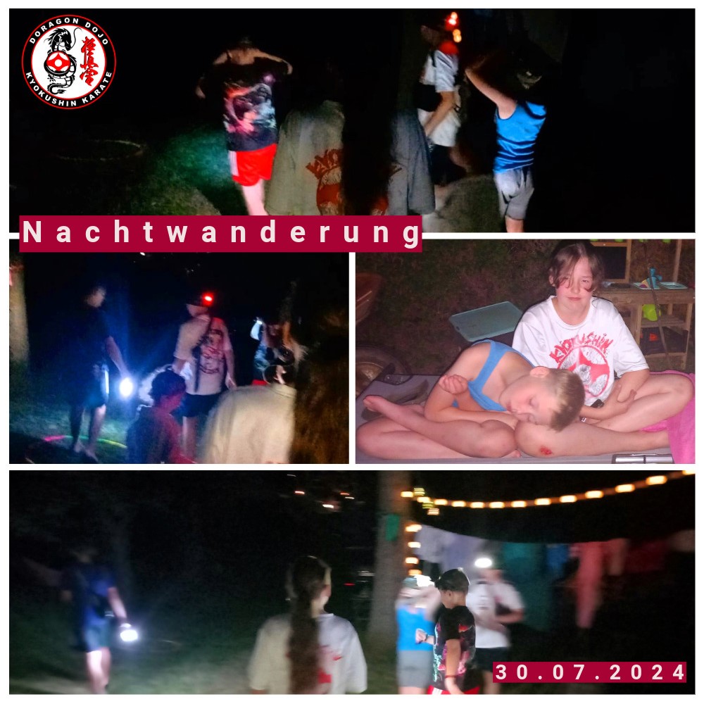 Die Tage vergingen schnell, und uns wurde bewusst, dass wir bereits Tag fünf erreicht hatten – den vorletzten Tag. Der Morgensport hatte es diesmal in sich: im Entengang ging es fast 60 Stufen die Treppe hoch, entspannt wieder hinunter und das Ganze viermal! Außerdem gab es lockeres Pratzentraining ohne Schutzausrüstung. Besonders bei diesem Training konnte man schon erkennen, wie stark das Team zusammengewachsen war. Sie unterstützten sich gegenseitig, feuerten einander an und liefen danach Hand in Hand zurück zur Unterkunft. Eines unserer angestrebten Ziele – Team-Building – war somit erreicht, was uns besonders stolz machte. Tag fünf des Trainingslagers sollte mit einem Ausflug zur „Strandkorb“-Bar (eine Strandbar mit Spielplätzen und leckeren Cocktails) abgerundet werden. Also machten wir uns wieder auf den (Wander)-Weg. Als wir bei über 30 Grad ankamen und kalte Getränke auf dem Tisch standen, wurden unsere Camp-Teilnehmer noch überrascht: Jeder erhielt ein T-Shirt vom Trainingslager als kleine Erinnerung an unvergessliche, intensive sechs Tage, in denen ein starkes Team gewachsen ist. Als wir am späten Nachmittag zurück waren, stand noch eine Trainingseinheit auf dem Programm. Trotz der hohen Temperaturen und Sonne hielten wir zwei Stunden Kihon und Kata durch. Und wer am Lagerfeuer dachte, der Tag sei vorbei, hatte sich geirrt: Eine Nachtwanderung war geplant – wovon die Kinder zuvor nichts wussten! Überrascht holten sie ihre Taschenlampen hervor und wir waren bereit zum Starten. Die Wanderung dauerte nur etwa 30 Minuten, war aber gefüllt mit Dunkelheit, krabbelnden Tieren und zwei Spuk-Gespenstern, die unseren jüngeren Teilnehmern einen gehörigen Schrecken einjagten! Alle waren dann dankbar dafür, dass wir sicher zurückgefunden hatten und uns am Lagerfeuer entspannen konnten. Dort hielten wir auch eine Rückschau auf das Trainingslager: Jeder durfte sagen, was ihm gefallen hat oder weniger gut war – damit wir auch im kommenden Jahr etwas Positives planen können. Überraschenderweise gab es keine Kritikpunkte von den Kindern; im Gegenteil: Alle waren traurig darüber, dass es schon fast vorbei war und wären gerne noch länger geblieben! Das war ebenfalls ein sehr gelungener Tag.