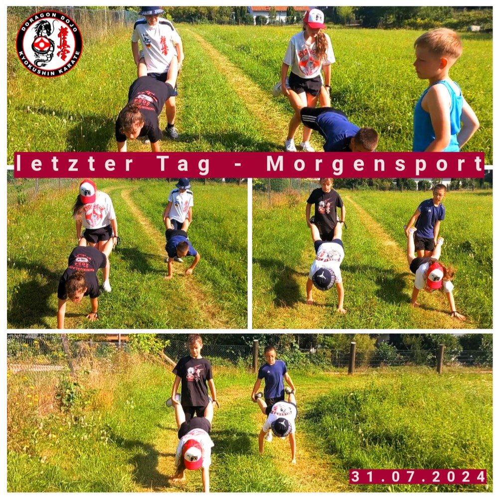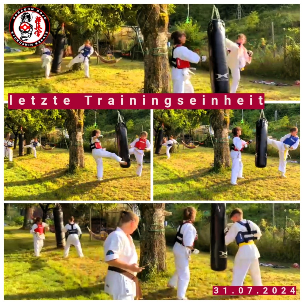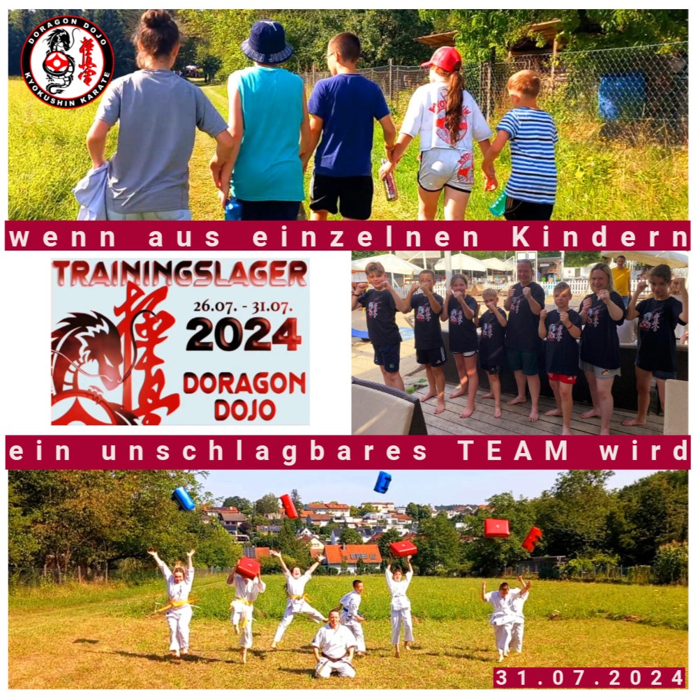 Und dann begann Tag sechs – der Abreisetag startete wie jeder andere Tag auch mit Morgensport. Nach dem Frühstück fand die letzte zweistündige Trainingseinheit statt – gefüllt mit Sandsacktraining, Kihon, Kata sowie Kraft- und Ausdauerübungen. Zum Abschluss des Trainings waren alle stolz darauf, was sie in den sechs Tagen gelernt und erreicht hatten; voller Freude sprangen sie in die Luft! Das Trainingslager begann mit sieben Kindern, die sich teilweise noch nicht gut kannten. In diesen sechs Tagen sind alle zu einem starken und unbesiegbaren Team zusammengewachsen – dies nehmen wir mit in die Zukunft. Das Doragon Dojo ist allen Eltern sehr dankbar für ihre Unterstützung bei diesem Projekt: Jede helfende Hand war Gold wert! Jede Umarmung, jedes „High-Five“ und jede Motivation hat dazu beigetragen, dass die Kinder immer stärker und selbstbewusster wurden. Es waren aufregende sechs Tage – und definitiv nicht das letzte Trainingslager für die Karate-Abteilung des TSV Weinsberg!