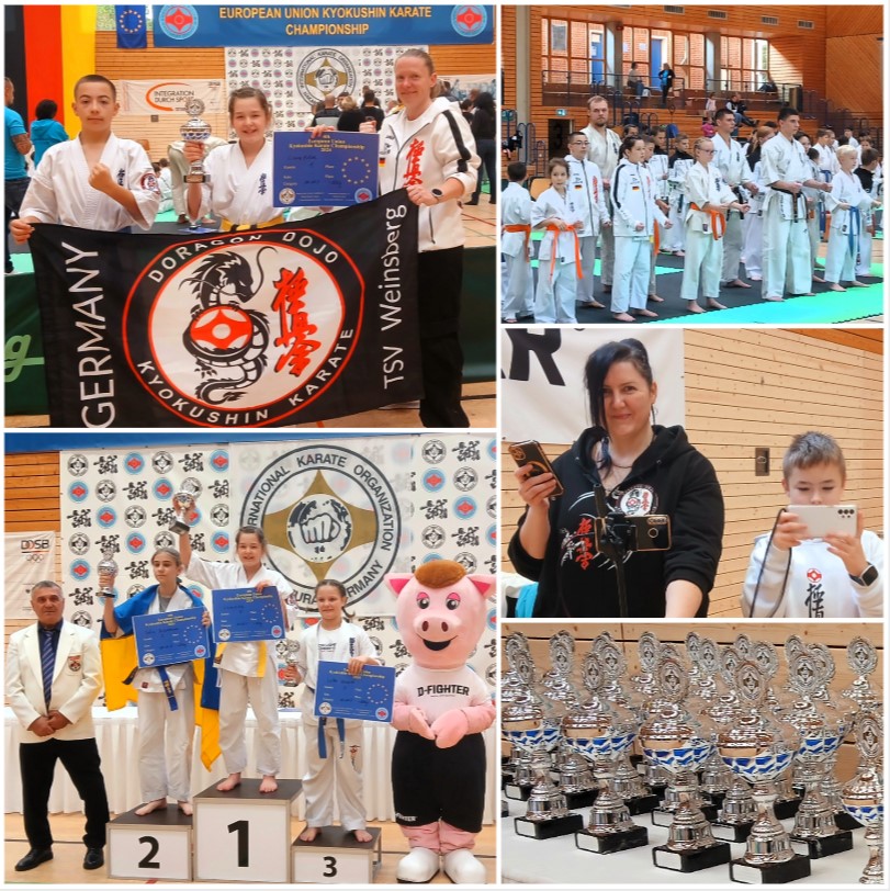 Am 19.10.24 fand in Schweinfurt die 4th European Union Kyokushin Karate Championship mit ca. 120 Teilnehmern von 17 Dojos aus Deutschland, der Ukraine und Tschechien statt. Das Doragon Dojo Weinsberg war mit Liana Ertel und Edmin Taletovic am Start.