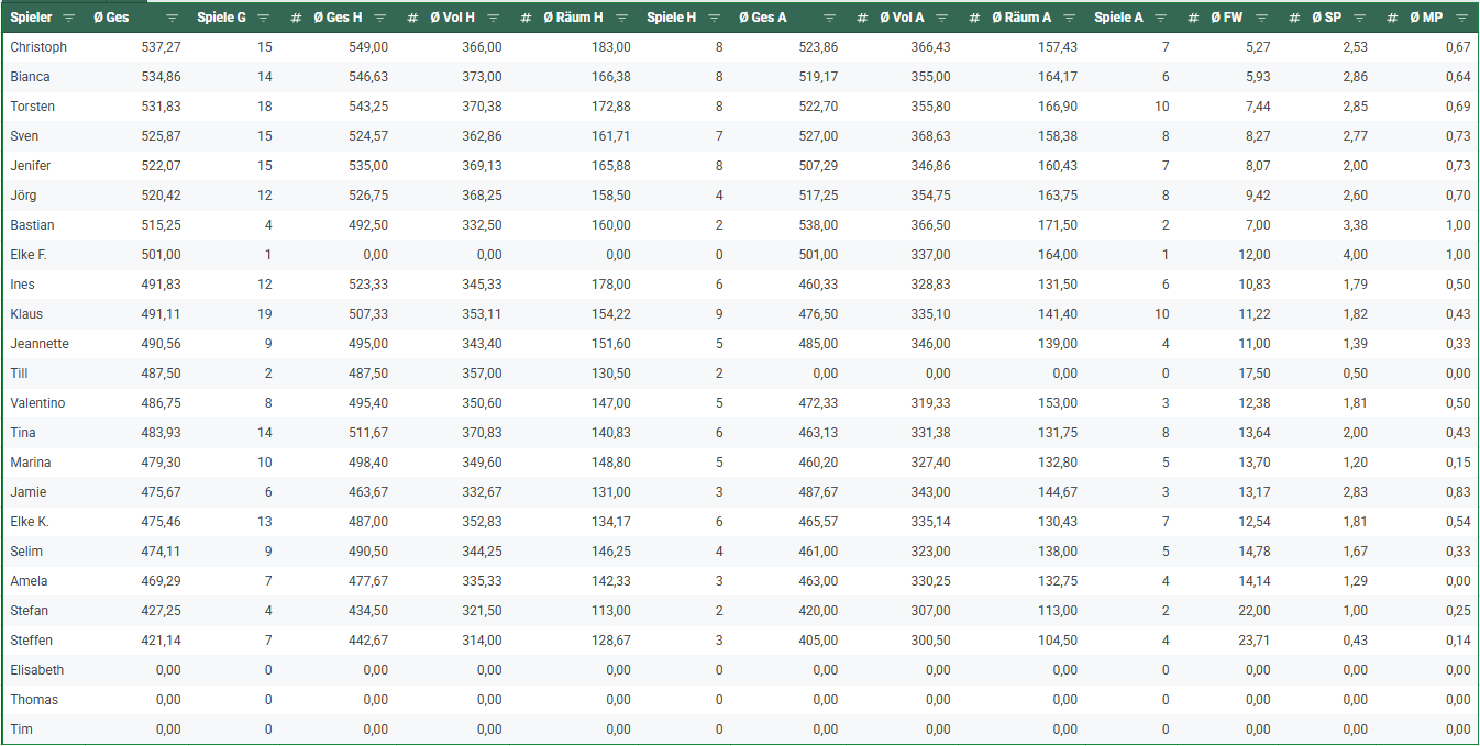Ergebnistabelle 2526 Spieltag 13