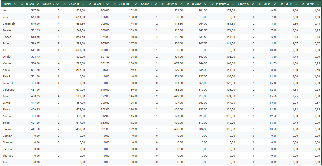 Ergebnistabelle 2526 Spieltag 4